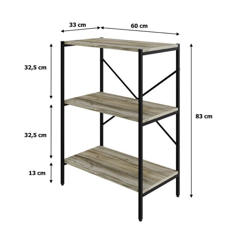 Estante C/03 Prateleiras 84x60x33cm Tub Tueh863 Carvalho - Est.preta Carvalho / Est.preta