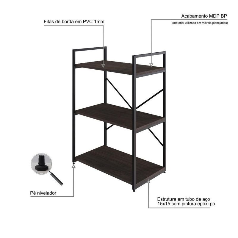 Sobre o ProdutoEstante C/03 Prateleiras 84x60x33cm Yon YOEO863 çoDescrição do Produto:A estante Yon YOEO1166 combina elegância e funcionalidade, perfeita para ambientes modernos e com estilo. Sua estrutura em tubos de aço com soldas a laser garante robustez e durabilidade, além de um excelente acabamento. Com design de linhas limpas e atemporal, oferece versatilidade para diversos usos, permitindo a criação de composições únicas e personalizadas, perfeita para organizar e exibir objetos decorativos com sofisticação e linha Yon é uma fusão elegante entre o estilo industrial e o contemporâneo. Com linhas limpas, materiais robustos e detalhes sofisticados, essa coleção é perfeita para quem busca um ambiente moderno e funcional. Os móveis desta linha oferecem uma versatilidade notável, adaptando-se a diversos ambientes e necessidades, permitindo a criação de composições únicas e personalizadas. sendo a escolha ideal para quem busca qualidade e estilo em um só Inclusos:1 EstanteDimensões dos Produtos:Estante C/03 Prateleiras 84x60x33cm Yon YOEO863 ço: 60 x 33 x 84 cmInformações Logísticas (Comp. X Prof. X Alt.) 83,5 x 34,5 x 8,5 cm - Peso: 8,101 KgPeso Total: 8,101 KgObservações:Não acompanha acessórios decorativos. Imagens meramente ilustrativas.Informações Técnicas / Características:- Cor do Produto: ço- Cor do Predominante: Revestido- Marca: Metalig- Modelo: YOEO863- Linha: Yon- Material: Mdp- Material da Estrutura / Pés: Aço- Acabamento: BP- Escala de Brilho: Fosco- Fita de Borda: Pvc - Possui Prateleiras: 3- Peso Máximo por Prateleira: 10kg- Possui Pés: 2- Pés Niveladores: Sim - Acabamento Estrutura: Epóxi-Pó- Formato: Retangular - Suporta Até (kg): 30kg- Comprimento: 60cm- Profundidade: 33cm- Altura: 84cm - Peso Lí.: 7,514Kg- Recomendações de Uso, Manutenção e Limpeza: Para a limpeza, utilize flanela seca ou pano macio levemente umedecido em água. Utilize um pano seco em seguida. Evite com produtos químicos (solventes, thinner, acetona, etc) e não utilize nenhum tipo de esponja de aço.- Necessita de Montagem: Sim / Acompanha Manual de Montagem- Complexidade da Montagem: Média: pode ser montado por mais de uma pessoa e/ou necessite de maior conhecimento para montagem.- Garantia: 01 ano Marca: Compace | Modelo: YOEO863 | Quantidade máxima de pedido: 1 | Necessita montagem: Sim | É em formato de L: Não | Comprimento: 83,5 cm | Altura: 33 cm | Largura: 60 cm | Profundidade: 60 cm | Material da estrutura: Aço | Produto: Estante | Cômodo indicado: Escritórios | Cor: Multicolorido | Tonalidade: Multicolorido | Quantidade de itens: 1 | Principais Características do Produto 0: Aço | do modelo: YOEO863 | Certificação de teste externa: Não aplicável | Baterias são necessárias?: false | Palavras-chave de Pesquisa: Não Aplicável | Principais Características do Produto 1: MDP | da peça: YOEO863 | de caixas: 1 | Principais Características do Produto 2: Pvc | Componentes incluídos: Manual de montagem e kit acessórios | Fabricante: Compace | Peso do item: unit=kilograms;value=7.5140000000000002 | Dimensões do item P x L x A: depth#value=33;width#value=60;depth#unit=centimeters;width#unit=centimeters;height#value=84;height#unit=centimeters Cor: Terracota/