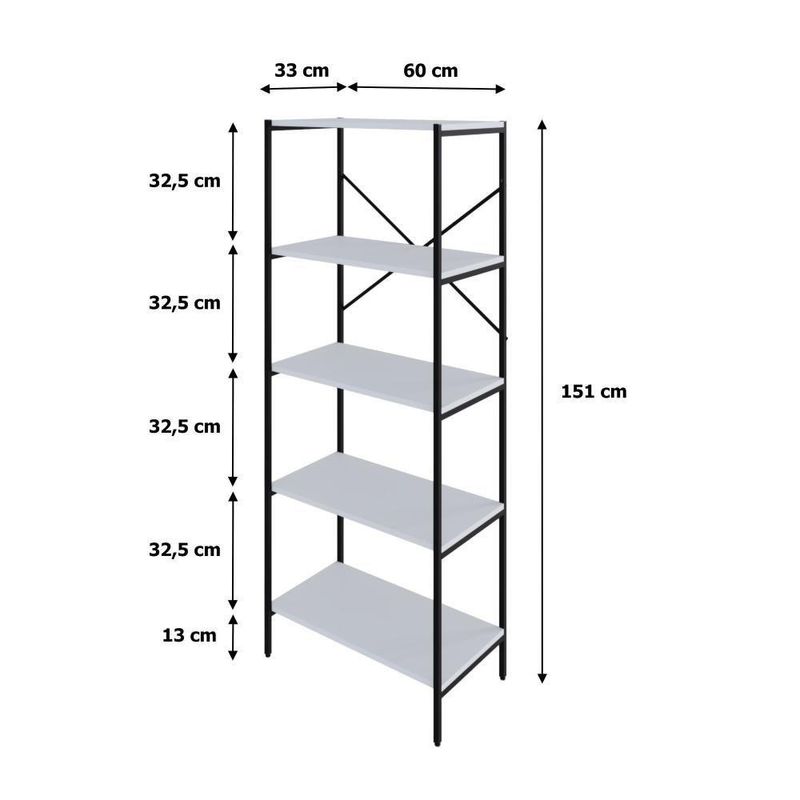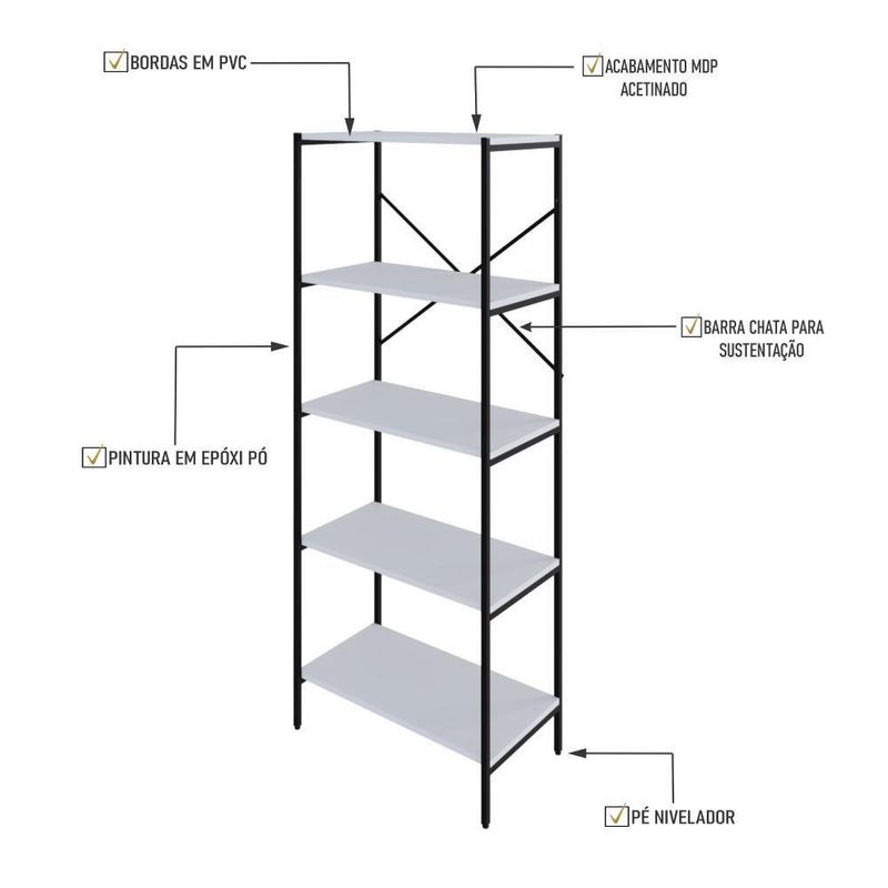 Estante C/05 Prateleiras 152x60x33cm Tub Tueh1565 Branco Chess - Est.preta Branco Chess / Est.preta
