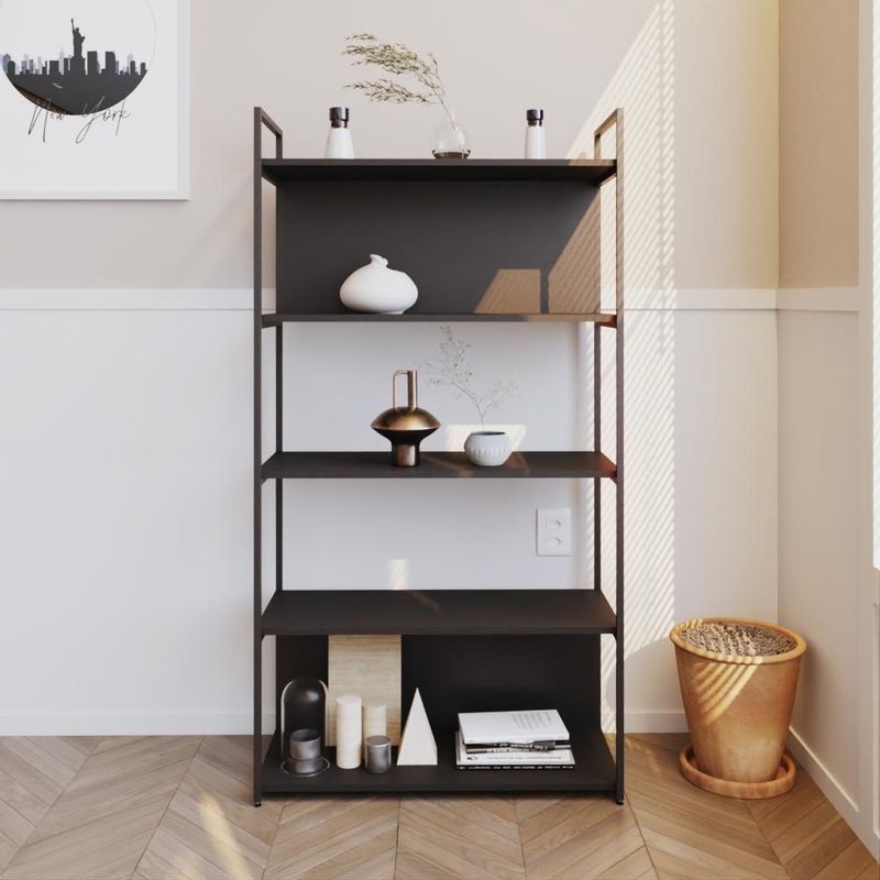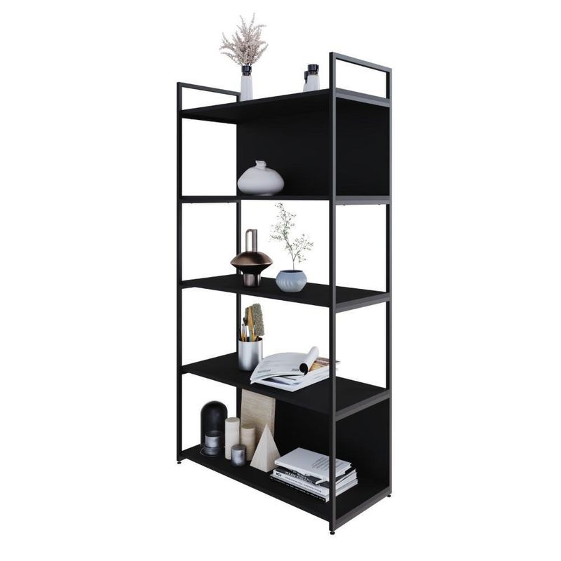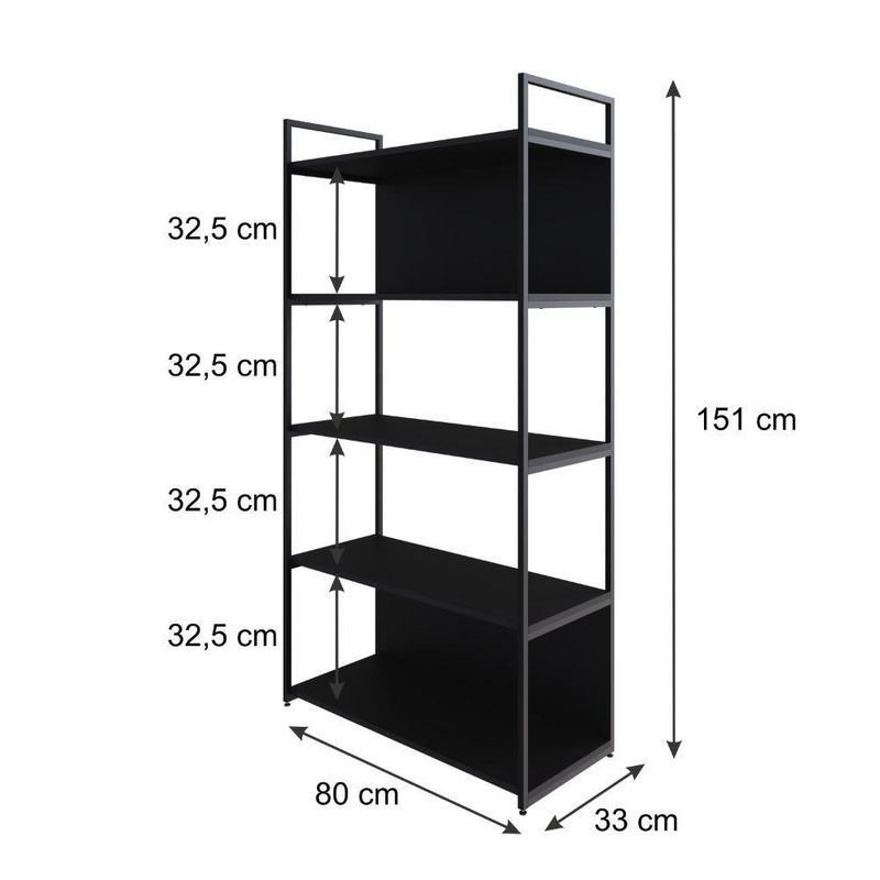 Estante C/05 Prateleiras 152x80x33cm C/fundo Yon Preto Tx/ Preto Tx/