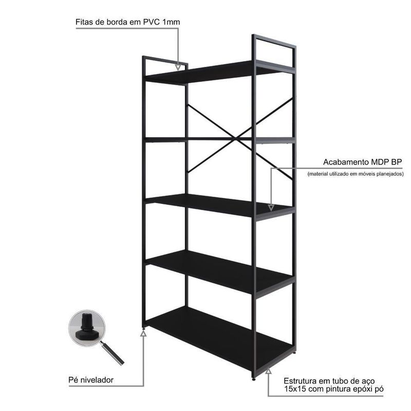 Estante C/05 Prateleiras 152x80x33cm Yon Preto Tx/ Preto Tx/
