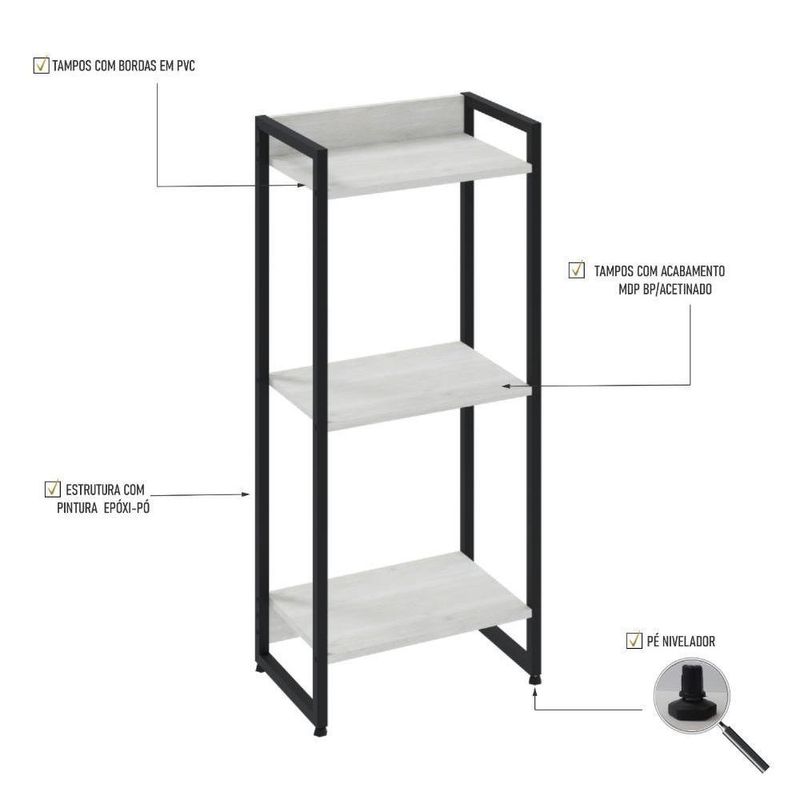 Estante Dynamica 45x30x104cm C/03 Prateleiras Snow / Est.preta Snow / Est.preta