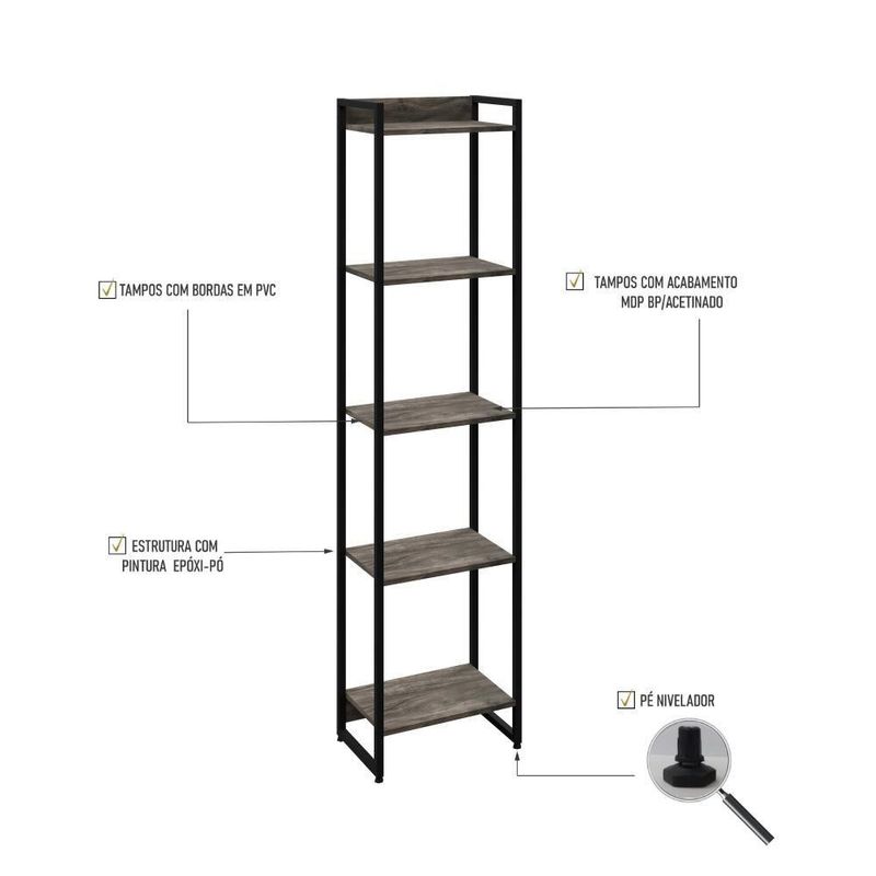 Estante Dynamica 45x30x187cm C/05 Prateleiras Carvalho Dark / Carvalho Dark /