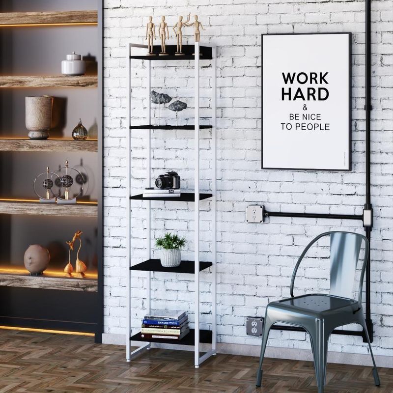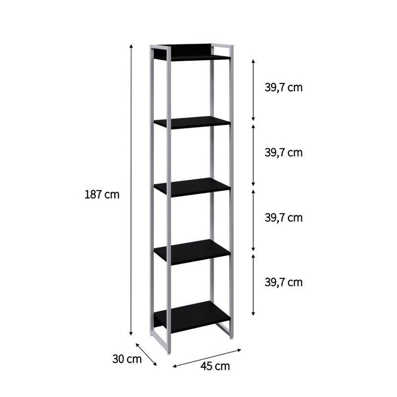 Estante Dynamica 45x30x187cm C/05 Prateleiras Preto ônix / Est.branca Preto ônix / Est.branca