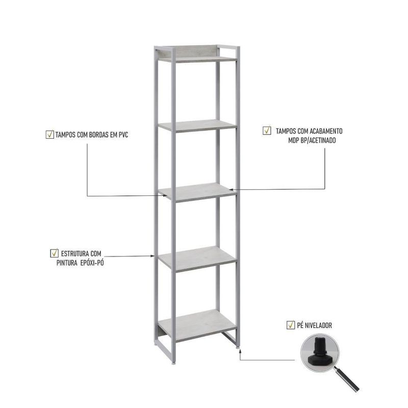 Estante Dynamica 45x30x187cm C/05 Prateleiras Snow / Est.branca Snow / Est.branca