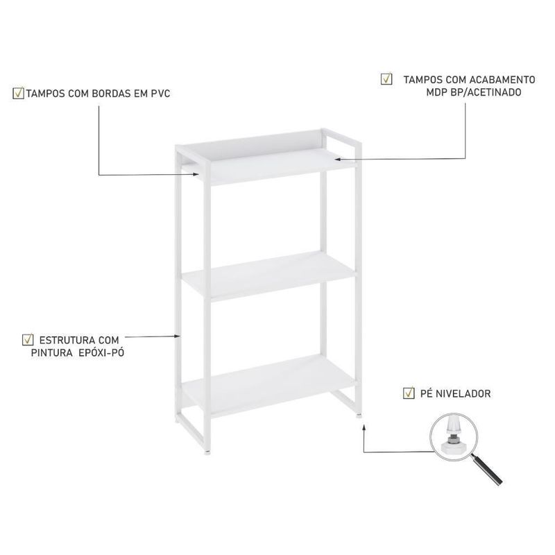 Estante Dynamica 60x30x104cm C/03 Prateleiras Branco Chess / Est.branca Branco Chess / Est.branca