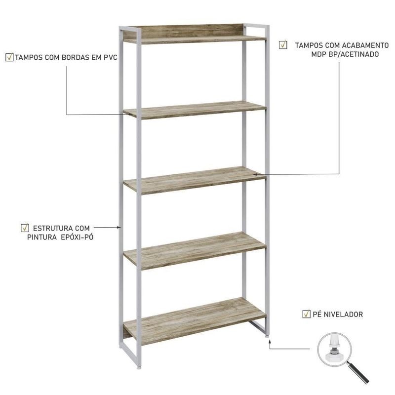 Sobre o ProdutoEstante Dynamica 80X30X187cm C/05 Prateleiras Carvalho / Est.BrancaDescrição do Produto:A Estante Dynamica DYES85 é um produto prático e versátil, que pode ser utilizado em diversos ambientes, como quarto e escritório, na sala, cozinha ou seu depó Linha Dynamica reúne design minimalista e praticidade, traços retos e móveis versáteis são as características dessa coleção. As estruturas metálicas possuem pintura Epóxi e sapatas niveladoras e, nos tampos, MDP BP Acetinado com fitas de borda em PVC. Itens Inclusos:1 EstanteDimensões dos Produtos:Estante Dynamica 80X30X187cm C/05 Prateleiras Carvalho / 80 x 30 x 187 cmInformações Logísticas (Comp. X Prof. X Alt.) 187 x 31 x 10 cm - Peso: 17,756 KgPeso Total: 17,756 KgObservações:Não acompanha acessórios decorativos. Imagens meramente ilustrativas.Informações Técnicas / Características:- Cor do Produto: Carvalho / - Marca: Compace- Modelo: DYES85- Linha: Dynamica- Material: Mdp- Material da Estrutura / Pés: Aço- Acabamento: BP Acetinado- Escala de Brilho: Fosco- Fita de Borda: Pvc- Possui Portas: Não - Possui Prateleiras: 5- Peso Máximo por Prateleira: 08 kg- Possui Pés: 2- Pés Niveladores: Sim - Acabamento Estrutura: Epóxi-Pó Texturizado - Suporta Até (kg): 40 kg- Comprimento: 80cm- Profundidade: 30cm- Altura: 187cm - Peso Lí.: 16,88Kg- Recomendações de Uso, Manutenção e Limpeza: Para a limpeza, utilize flanela seca ou pano macio levemente umedecido em água. Utilize um pano seco em seguida. Evite com produtos químicos (solventes, thinner, acetona, etc) e não utilize nenhum tipo de esponja de aço.- Necessita de Montagem: Sim / Acompanha Manual de Montagem- Complexidade da Montagem: Média: pode ser montado por mais de uma pessoa e/ou necessite de maior conhecimento para montagem.- Garantia: 6 meses Material: Mdp | Acabamento: BP Acetinado | Escala de Brilho: Fosco | Fita de Borda: Pvc | Material da Estrutura: Aço | Acabamento da Estrutura: Epóxi-Pó Texturizado | Produto: Estante | Cômodo indicado: Escritórios | Cor: Multicolorido | Tonalidade: Multicolorido | Quantidade de itens: 1 | Principais Características do Produto 0: Aço | do modelo: DYES85 | Certificação de teste externa: Não aplicável | Baterias são necessárias?: false | Palavras-chave de Pesquisa: Não Aplicável | Principais Características do Produto 1: MDP | da peça: DYES85 | de caixas: 1 | Principais Características do Produto 2: Pvc | Componentes incluídos: Manual de montagem e kit acessórios | Exige montagem: true | Fabricante: Compace | Peso do item: unit=kilograms; | Dimensões do item P x L x A: depth#value=30;width#value=80;depth#unit=centimeters;width#unit=centimeters;height#value=187;height#unit=centimeters Cor: Carvalho /