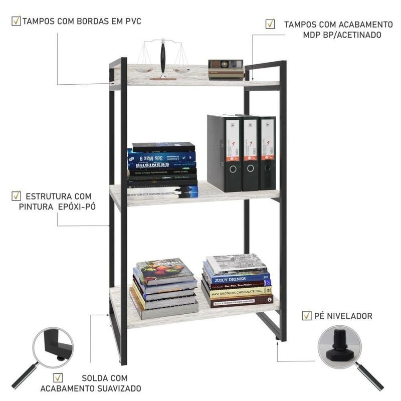 Sobre o ProdutoEstante Kuadra 60X40X104cm C/03 Prateleiras Amadeirado / Est.PretaDescrição do Produto:A Estante Kuadra KUES63 tem montagem simples e versátil, podendo ser utilizada em diversas composições com outros móveis em diversos ambientes, como quarto e escritório, na sala, cozinha ou seu depó Linha Kuadra tem seu design com inspiração no estilo industrial, que remete muito a decoração usada nos Lofts das grandes metrópoles nos anos 60 e 70. Harmonizando o metal e os tons de madeira, foram projetados móveis versáteis e com estilo, que podem compor ambientes íveis cheios de personalidade, perfeitos para você decorar sua casa ou seu trabalho, tendo um resultado que caminha do estilo rústico ao Inclusos:1 EstanteDimensões dos Produtos:Estante Kuadra 60X40X104cm C/03 Prateleiras Amadeirado / 60 x 40 x 104 cmInformações Logísticas (Comp. X Prof. X Alt.) 103 x 41 x 11 cm - Peso: 12,01 KgPeso Total: 12,01 KgObservações:Não acompanha acessórios decorativos. Imagens meramente ilustrativas.Informações Técnicas / Características:- Cor do Produto: Amadeirado / - Marca: Compace- Modelo: KUES63- Linha: Kuadra- Material: Mdp- Material da Estrutura / Pés: Aço- Acabamento: BP Acetinado- Escala de Brilho: Fosco- Fita de Borda: Pvc- Possui Portas: Não - Possui Prateleiras: 3- Peso Máximo por Prateleira: 10 kg- Possui Pés: 2- Pés Niveladores: Sim - Acabamento Estrutura: Epóxi-Pó Texturizado - Suporta Até (kg): 30 kg- Comprimento: 60cm- Profundidade: 40cm- Altura: 104cm - Peso Lí.: 11,32Kg- Recomendações de Uso, Manutenção e Limpeza: Para a limpeza, utilize flanela seca ou pano macio levemente umedecido em água. Utilize um pano seco em seguida. Evite com produtos químicos (solventes, thinner, acetona, etc) e não utilize nenhum tipo de esponja de aço.- Necessita de Montagem: Sim / Acompanha Manual de Montagem- Complexidade da Montagem: Média: pode ser montado por mais de uma pessoa e/ou necessite de maior conhecimento para montagem.- Garantia: 6 meses Acabamento: BP Acetinado | Escala de Brilho: Fosco | Fita de Borda: Pvc | Material da Estrutura: Aço | Depth Front to Back: 40 cm | Acabamento da Estrutura: Epóxi-Pó Texturizado | Depth Height Floor to Top: 104 cm | Depth Width Side to Side: 60 cm | Quantidade de caixas de embalagem: 1 | Modelo: Estante Kuadra | Marca: Compace | Produto: Estante | Cômodo indicado: Escritórios | Cor: Multicolorido | Tonalidade: Multicolorido | Material: MDP | do modelo: KUES63 | Baterias são necessárias?: false | Palavras-chave de Pesquisa: Não Aplicável | da peça: KUES63 | de caixas: 1 | Componentes incluídos: Manual de montagem e kit acessórios | Fabricante: Compace | Quantidade de itens: 1 | Principais Características do Produto 0: Escritório | Certificação de teste externa: Não aplicável | Principais Características do Produto 1: BP Acetinado | Principais Características do Produto 2: Estrutura de aço | Exige montagem: true | Acabamento do móvel: BP Acetinado | Peso do item: ;unit=kilograms | Dimensões do item P x L x A: width#value=60;depth#unit=centimeters;height#value=104;height#unit=centimeters;depth#value=40;width#unit=centimeters | Recursos da Mesa: | Duração da Garantia: | Coleção de Antiguidade: | Tipo de Garantia: | Recursos da Escrivaninha: | Tipo de Mesa: | Desing da Escrivaninha: | País de Origem: | Móvel Dobrável: | Dimensões do Produto (A x L x C), sem a caixa de embalagem: | Montagem: | Base da Mesa: | Produto personalizado: | Motivo de Isenção Anvisa: | Data de validade Anvisa: | Tamanho Do Pacote: | Shape: | Formato da Escrivaninha: | Nr. do Lote do Produto: | Comprimento: | Altura da Mesa: | Código Anvisa do Produto: | Formato do Espelho: | de Assentos: | Qtd. de Produto no Lote: | Funcionalidades: | Temas de Estampas: | Estilo: | Quantidade: Cor: Snow /