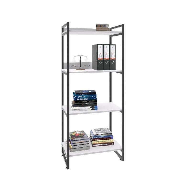 Estante Kuadra 60x40x146cm C/04 Prateleiras Branco Chess / Est.preta Branco Chess / Est.preta