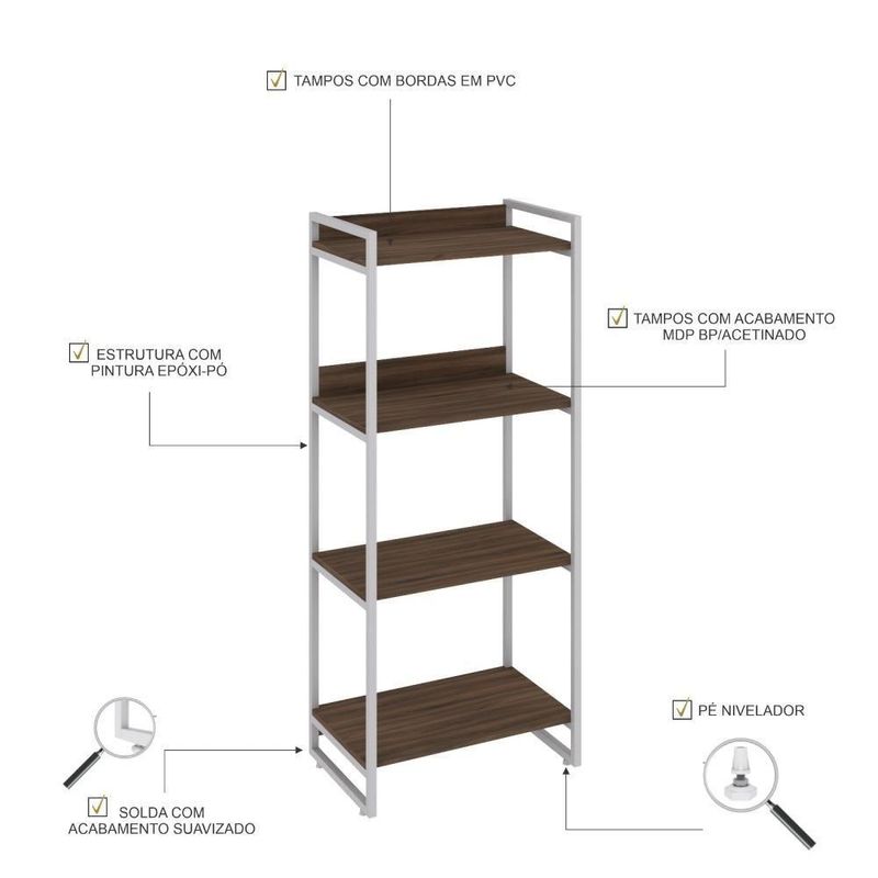 Estante Kuadra 60x40x146cm C/04 Prateleiras Nogal / Nogal /