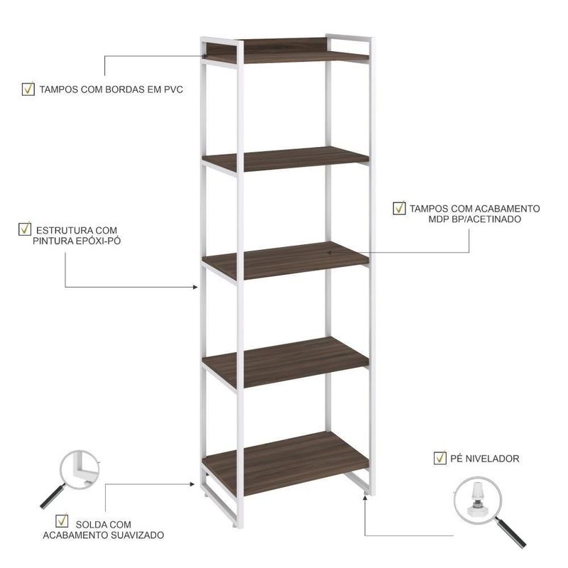 Estante Kuadra 60x40x187cm C/05 Prateleiras Nogal / Nogal /