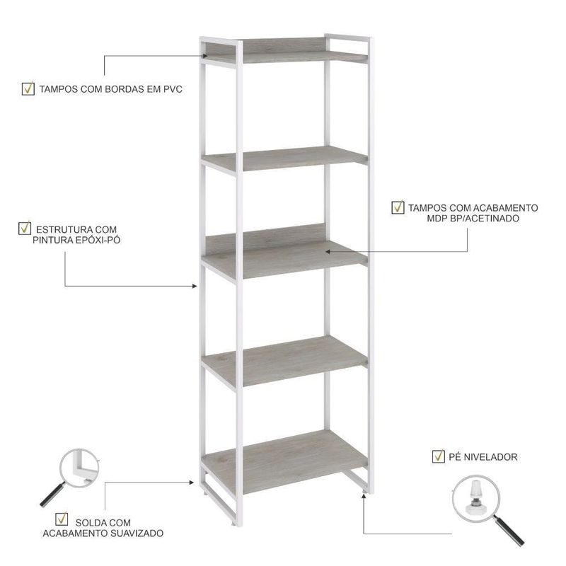Estante Kuadra 60x40x187cm C/05 Prateleiras Snow / Snow /
