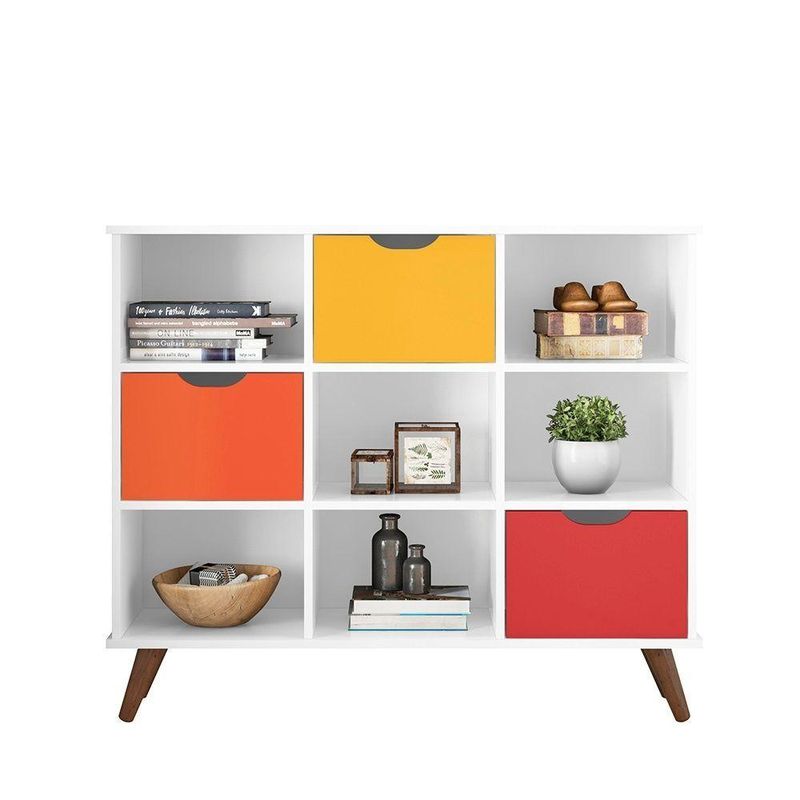 Estante Nicho Vintage Sabina Branco Com Gavetas Coloridas