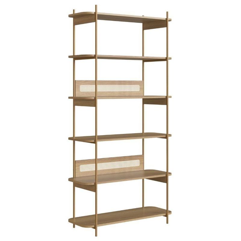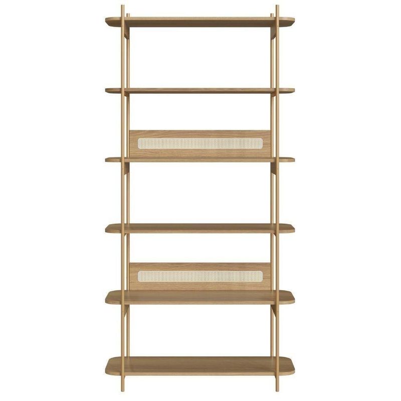 Estante Oslo Artesano 90 Cm (largura) Mdp Hanover Palha Sintética Bege Pé Metal Dourado
