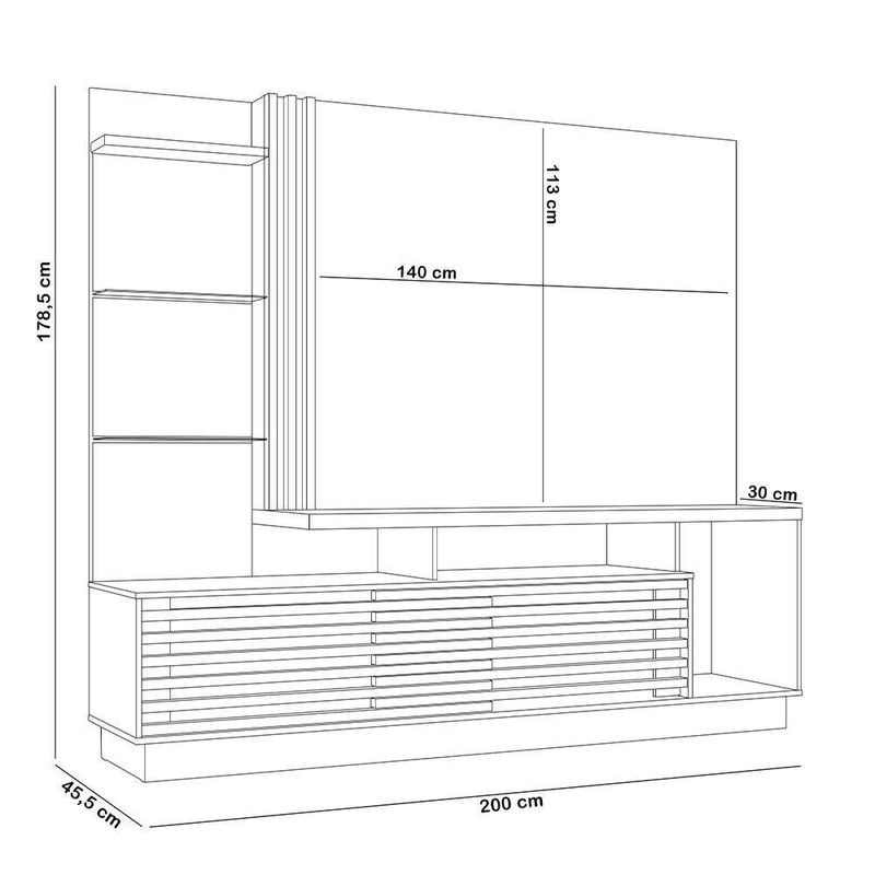 Espaço livre para a TV (L x A x P): 140 x 113 x 30 cm.