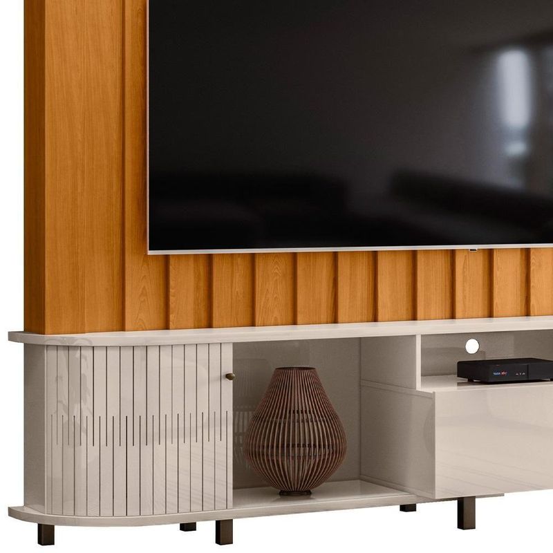 Estante Painel Para Tv 70 Pol Com Led 242cm Hector M07 Cinamomo Off White - Lyam Decor