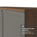 O conjunto é composto por gavetas e armários amplos, um armário com portas de vidro, que pode ser como cristaleira ou livreiro. Essa combinação permite acomodar uma , organizar livros, louças e itens decorativos com facilidade. O acabamento da estrutura é no tom amadeirado Rustic, das frentes em Cinza e da cristaleira em Rustic também, possui alta resistência e textura suave ao toque.