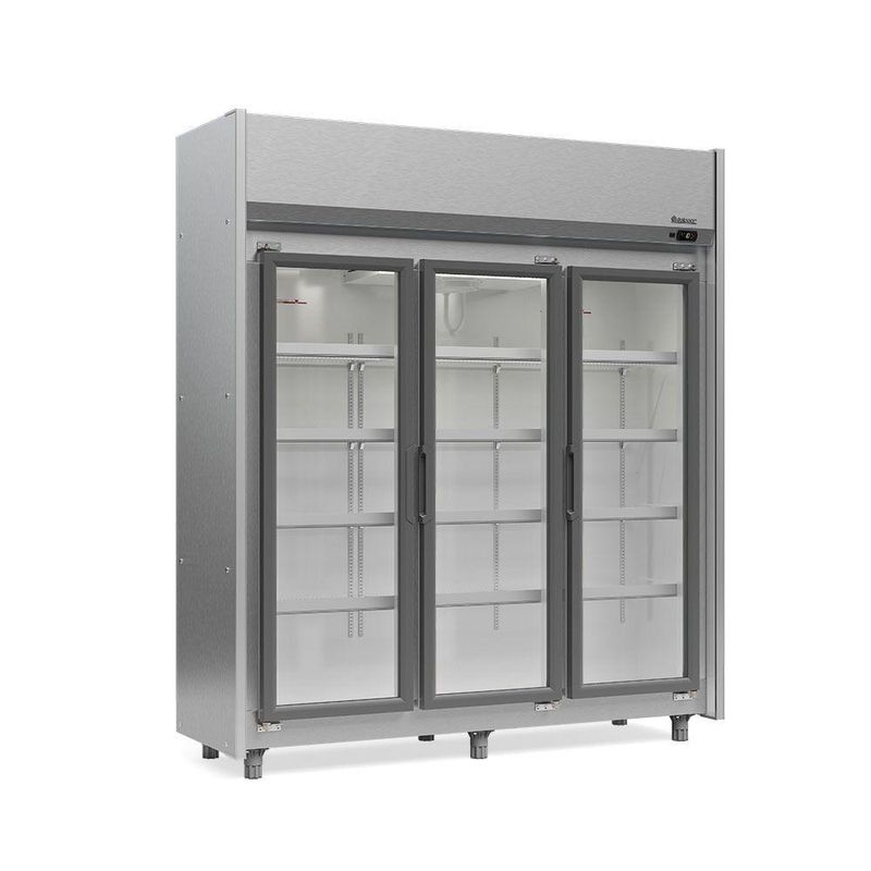 Expositor Refrigerador Vertical Auto Serviço 3 Portas 4 Prateleiras GEAS3P Gelopar. Conservação e Exposição de bebidas, frios e laticínios. Refrigeração: Ar forçado com evaporador aletado. Temperatura: -2 a +10C. Degelo: Automático. Controlador eletrônico com indicador de temperatura. Revestimento Interno: Interno aço pré-pintado. Revestimento Externo: aço pré-pintado. Iluminação LED (interna), com interruptor. Portas: Medindo 52x147cm. Vidro temperado, duplo, com gás argônio. Prateleiras aramadas: 4 níveis reguláveis e inclináveis. Pés niveladores. Vidros sujeitos a condensação da umidade do ar. Porta etiquetas acompanham o produto. CAPACIDADE: 1200L. TEMPERATURA: -2 a +10C. CONSUMO: 11,59 kWh/dia. PESO: 177kg. DIMENSÕES EXTERNAS (CxAxL): 182,6x209,7x58,8cm. Equipamento certificado conforme Portaria Inmetro nº 371/2009. Expositor Refrigerador Vertical Auto Serviço 3 Portas 4 Prateleiras GEAS3P Gelopar é na Atau.