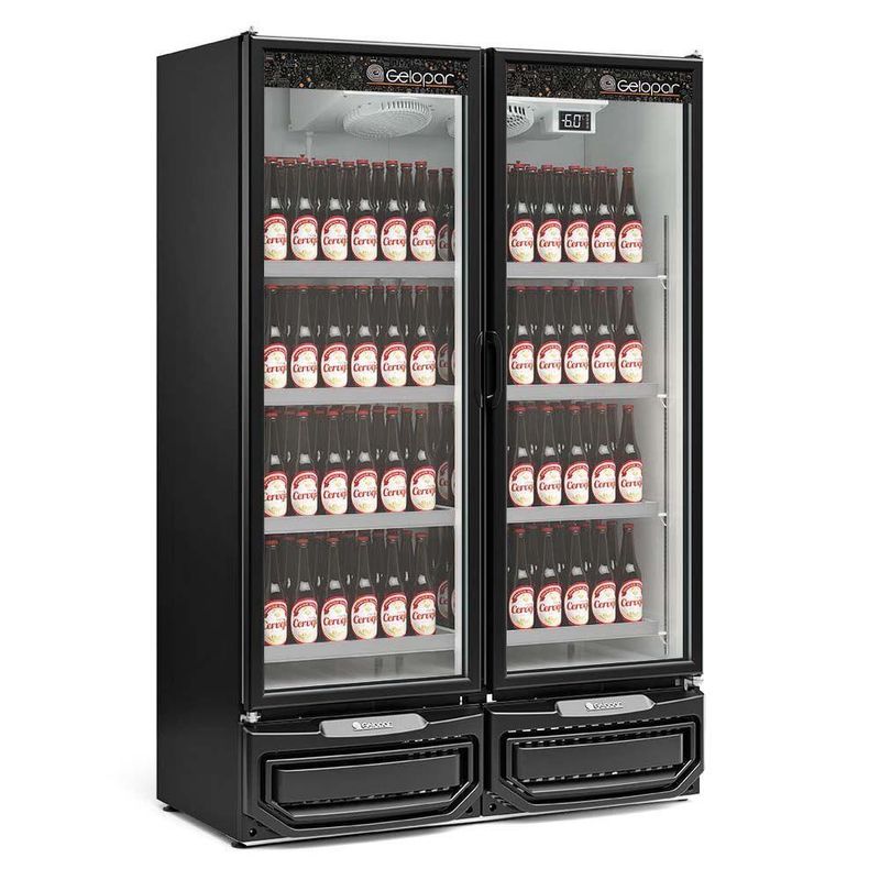 Expositor Vertical 2 Portas De Vidro Gcbc950 Gelopar Refrigerador 957 Litros Preto 220v