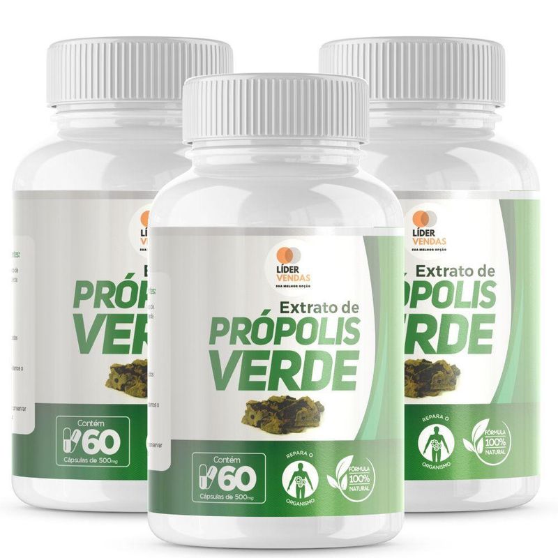 Extrato De Própolis Verde 500mg 60 Cap - 3 Potes Imunidade Forte E Saúde Natural!