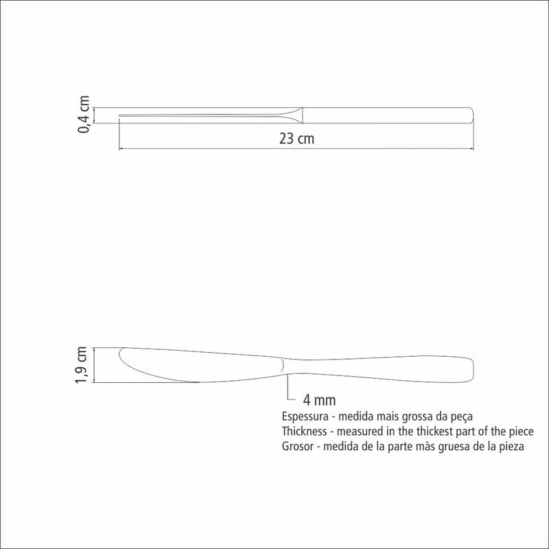 Recomendações de Uso:Modo de uso: Use apenas sabão ou detergente e uma esponja macia. Outros tipos de produtos, como palha de aço, poderão riscar ou prejudicar o brilho dos talheres. Enxague bem cada peça, a fim de remover totalmente os resíduos dos produtos de limpeza, que, por serem abrasivos, podem atacar o inox. Sempre que possível, use água quente, pois renova o brilho do talher. Após a lavagem, enxague imediatamente os talheres, caso contrário, as substâncias químicas da água (cloro) poderão causar manchas. Não guarde os talheres em locais úmidos. Lavagem em máquina de lavar louças, retire os talheres logo que tenha terminado o ciclo enxaguar.