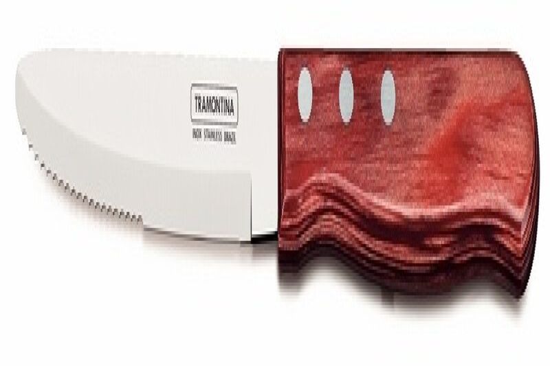 Muito mais qualidade e bom gosto na hora de servir um bom churrasco. Com a Faca para Churrasco Jumbo Tramontina com lâmina em aço inox e cabo em madeira Polywood vermelho 5 polegadas o estilo e praticidade estão garantidos. Perfeita para servir à mesa, ela tem lâmina em aço inox e um moderno cabo em madeira tratada Polywood na cor vermelha. É uma faca sem ponta que garante mais resistência e durabilidade nas refeições. É a peça perfeita para acompanhar as melhores carnes.