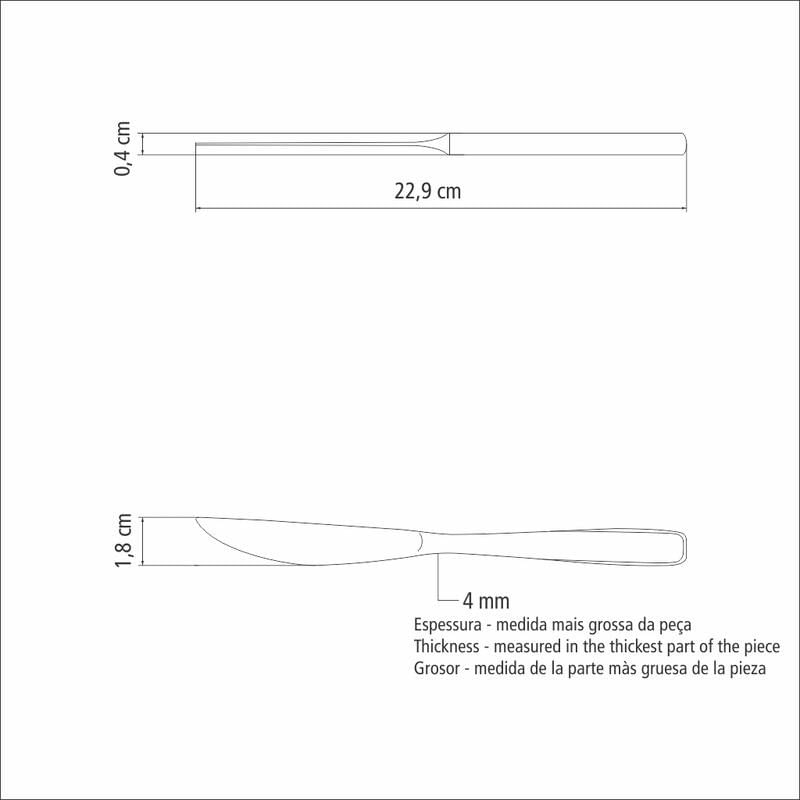 - Faca totalmente temperada, que garante maior durabilidade no fio de corte e maior resistência à corrosão, e por sua característica de temperabilidade, não risca as porcelanas.