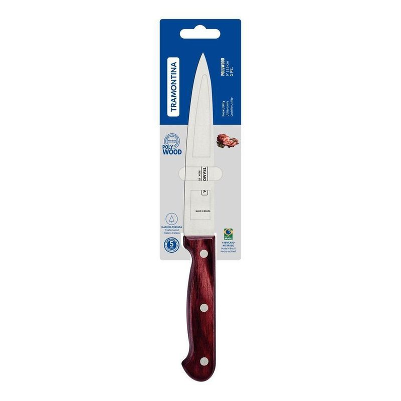 Faca Utility Tramontina Polywood Com Lâmina Em Aço Inox E Cabo De Madeira Tratada Vermelho 6 Tramontina