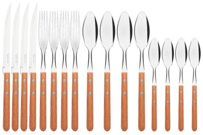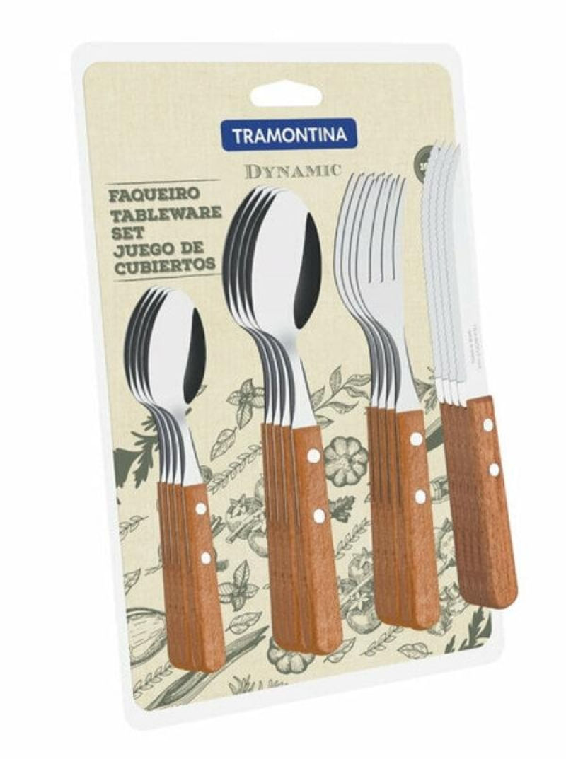Com cabos de madeira natural e rebites de alumínio, os talheres da Linha Dynamic levam rusticidade e beleza às refeições informais. A qualidade das peças é garantida também pela espessura e formato das lâminas de aço inox. As lâminas das facas recebem tratamento térmico, resultando em maior resistência e durabilidade do fio de corte.Recomendações de Uso:Antes do uso: Antes de utilizar o produto novo, remova as eventuais etiquetas e lave-o com água e detergente.Modo de uso: Tenha cuidado ao manusear produtos cortantes e perfurantes e mantenha-os fora do alcance de crianças. Para maior durabilidade dos produtos, recomenda-se secar bem antes de guardar.Para descarte dos produtos e embalagens siga as orientações de reciclagem vigentes.