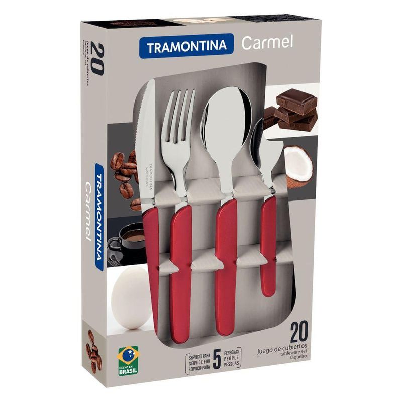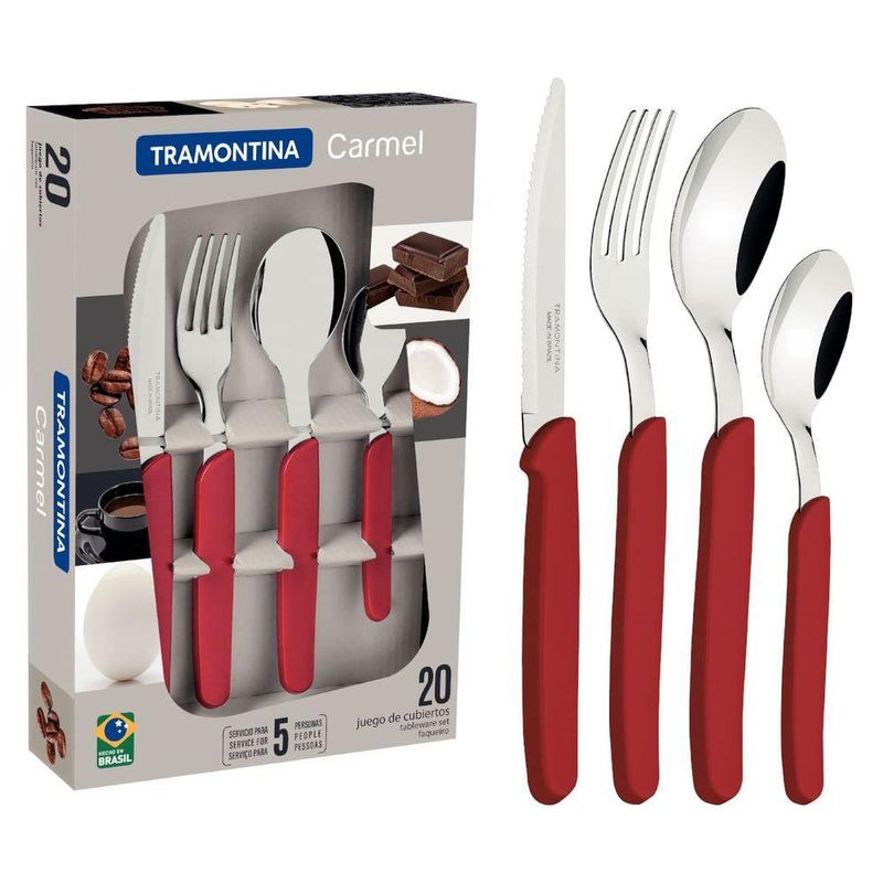 Faqueiro Tramontina Carmel 20 Peças Carmim Médio Aço Inox