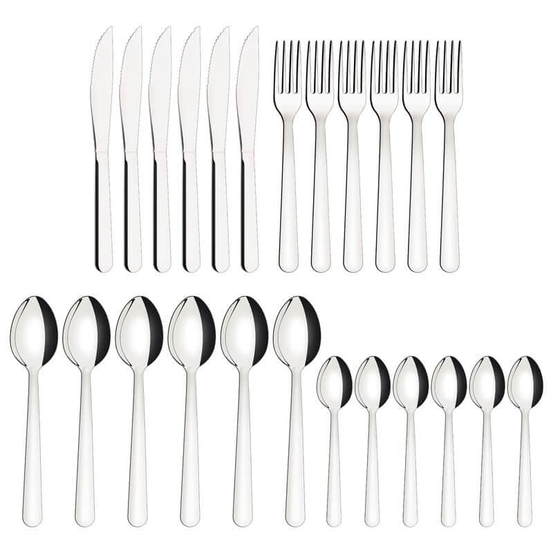 - Garfos e colheres que garantem maior resistência devido a espessura do aço e a estampagem das lâminas.