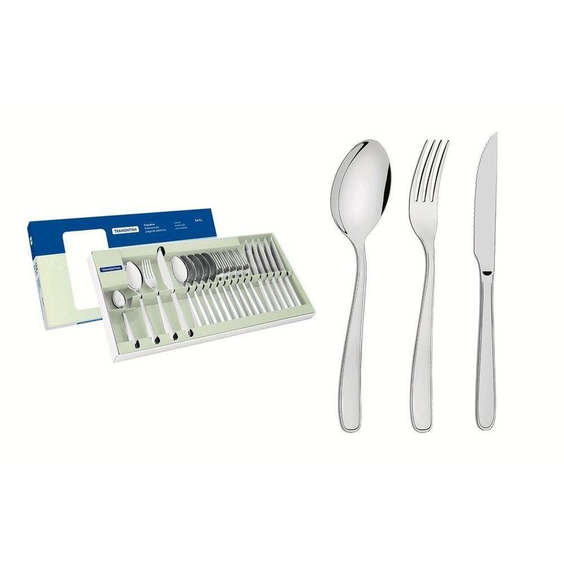 Faqueiro Tramontina Maresias em Aço Inox com Facas para Churrasco Acabamento em Brilho 24 Peças Tramontina -