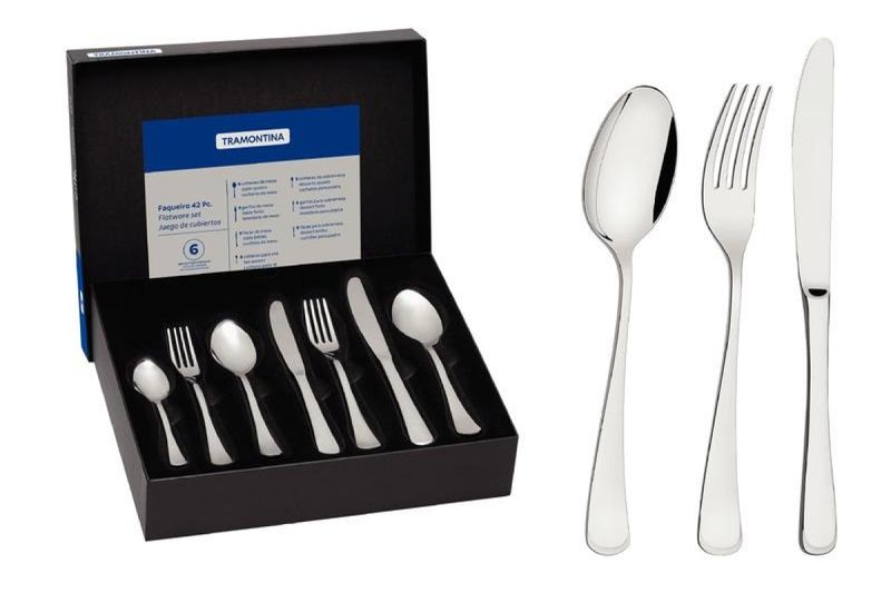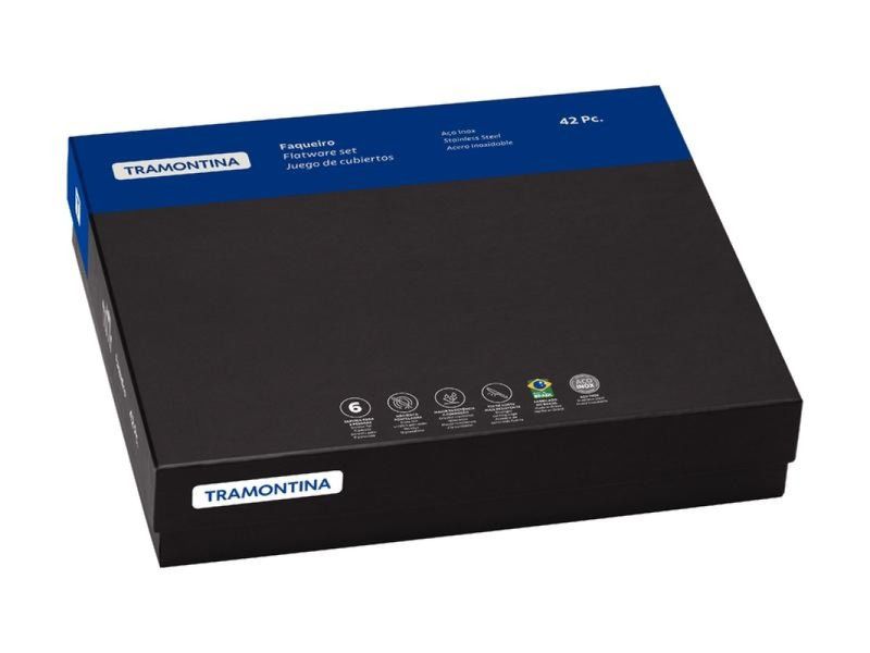 Detalhes que encantam e valorizam cada refeição. O Faqueiro Tramontina Mônaco em Aço Inox com 42 peças combina qualidade, beleza e acabamento impecável para compor mesas que impressionam. As colheres possuem bojo simétrico com bordas arredondadas, garantindo conforto ao usar. Os garfos contam com dentes polidos internamente e formato pensado para se ajustar com suavidade à boca. As facas de mesa são forjadas e totalmente temperadas, oferecendo excelente desempenho de corte, alta resistência à corrosão e a vantagem de não riscarem porcelanas. Produzido integralmente em aço inox, o faqueiro mantém suas características por muito mais tempo, com um brilho que se destaca em qualquer ocasião. Um conjunto que valoriza o momento à mesa com presença e qualidade.
