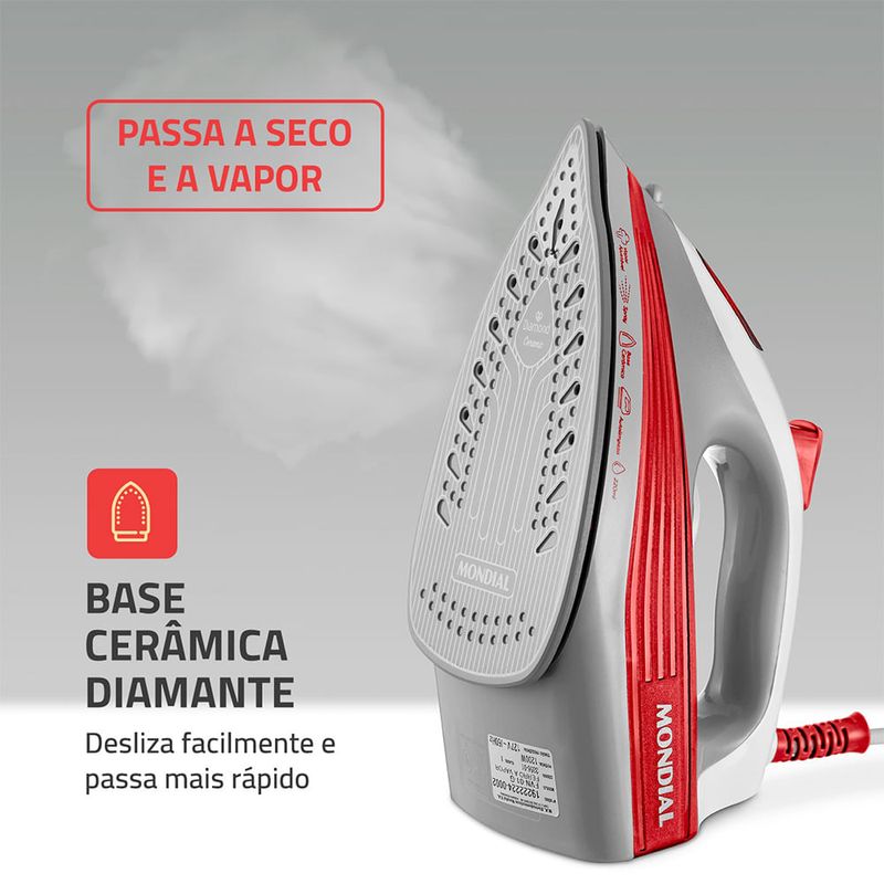 BASE CERÂMICA DIAMANTE: A tecnologia permite que o ferro deslize suavemente sobre o tecido e passa mais rápido. A agilidade na hora de passar roupas é garantida!
