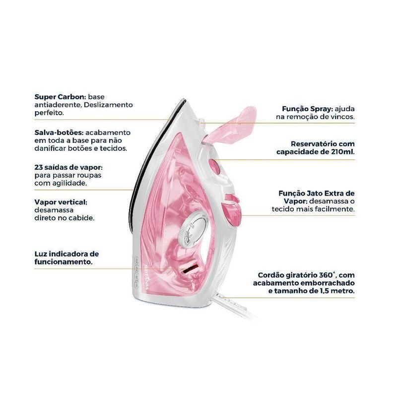 Ferro De Passar A Vapor Britânia Rosa Vapor Extra BFVE01A 110V