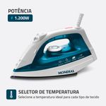 SELETOR DE TEMPERATURA:  É possível controlar a temperatura ideal, de acordo com cada tipo de tecido.