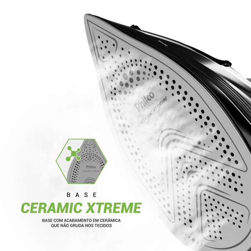 Imagine um Ferro de Passar com base em cerâmica avançada que desliza suavemente sobre os tecidos, sem grudar, proporcionando um resultado impecável em cada peça. Este é o Ferro de Passar a Vapor Philco PFV70!Com um reservatório generoso de 320ml, você nunca mais perderá tempo verificando o nível de água. Acompanhe em tempo real e ganhe autonomia para passar suas roupas de maneira eficiente e sem interrupçõesA função Vapor Vertical é a solução ideal para quem busca praticidade. Desamasse suas roupas diretamente no cabide, economizando tempo e facilitando seu dia a dia. Já com a função Vapor Extra, elimine amassados e vincos difíceis, de maneira rápida e fácil.Com 92 saídas de vapor estrategicamente posicionadas, o Ferro PFV0 distribui uniformemente o vapor. E, somada à base Ceramic Xtreme, que não gruda nos tecidos, tenha resultados eficientes e profissionais em minutos.Experimente o poder da tecnologia aliado à praticidade no seu dia a dia. Com o Ferro de Passar a Vapor Philco PFV70, você não só cuida das suas roupas com mais eficiência, mas também ganha tempo para aproveitar o que realmente importa. Principais Características- Base cerâmica