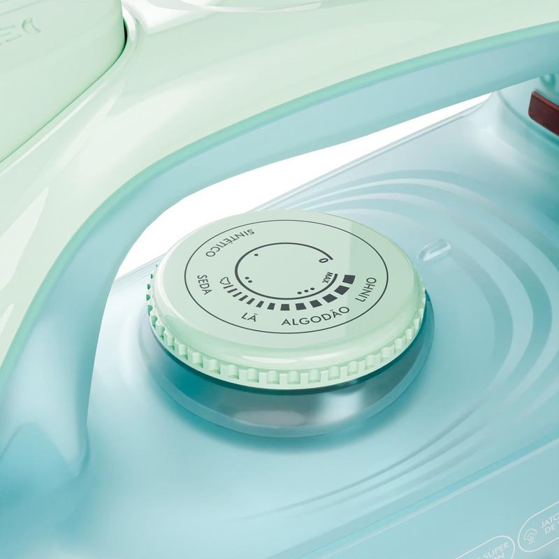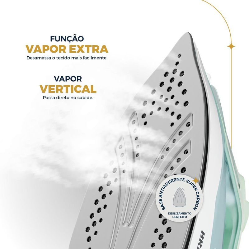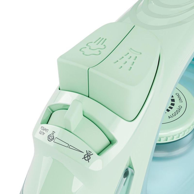 Possui 23 saídas de vapor que proporcionam um jato contínuo e potente, além da função vapor extra e spray, que auxiliam na remoção de vincos profundos com precisão e rapidez.