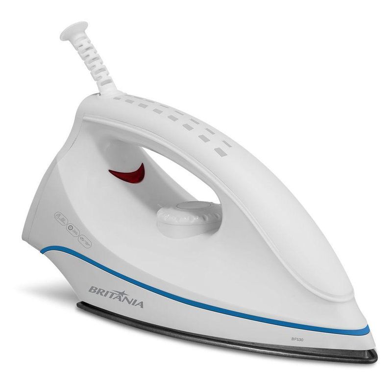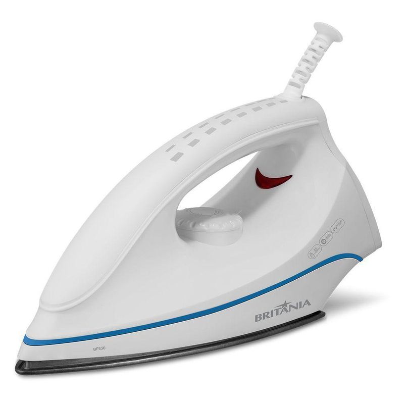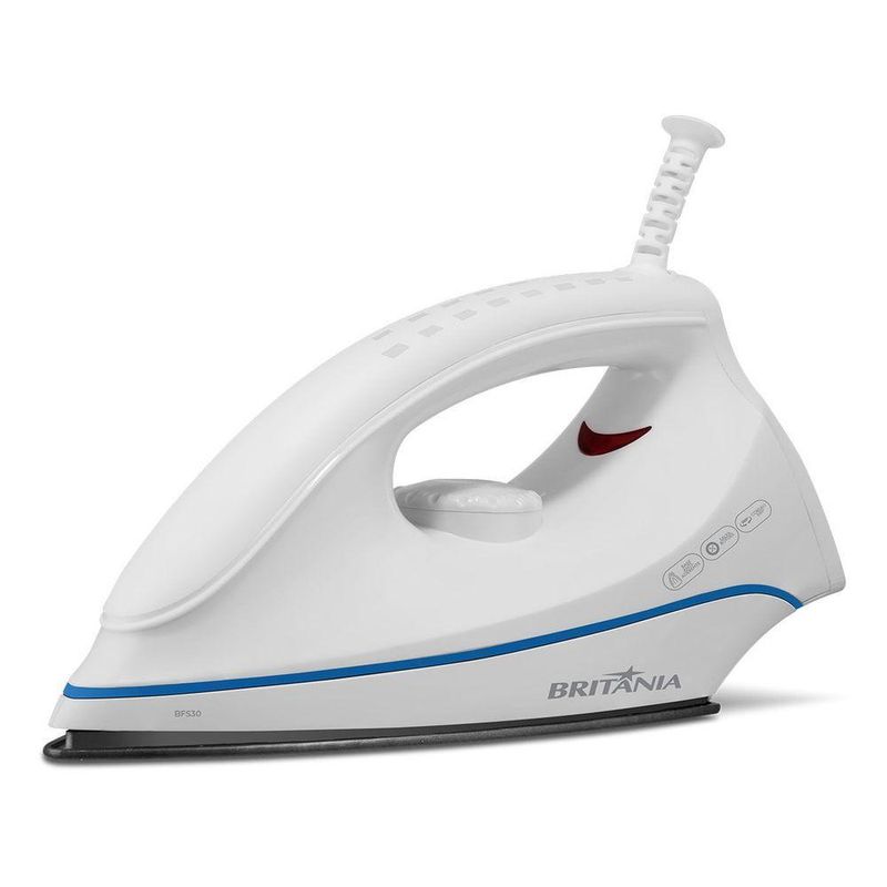 Mais praticidade para quem tem uma vida corrida! O Ferro de Passar Britânia BFS30 conta com 1250W de potência, ou seja, aquece muito e rapidamente.Seu aquecimento acontece em 26 segundos e proporciona muita agilidade para passar sem atrasos. São 5 temperaturas para você escolher a ideal para cada tipo de tecido e manter o cuidado com as suas roupas! Além de possuir salva botões, que protegem os botões durante o uso do ferro de passar.Com muito mais eficiência, a temperatura máxima do Ferro de Passar BFS30 da Britânia é de 200°C. Além disso, sua base com revestimento antiaderente garante a distribuição do calor de maneira uniforme e rápida.Por possuir um cordão com 1,7m de comprimento, emborrachado e com giro de 360°, você tem mais comodidade e liberdade de movimento na hora de passar suas roupas.Ferro de Passar Britânia BFS30 5 temperaturas 1250W, um ferro compacto que se encaixa na sua rotina e no seu espaço! Principais Características- Base com revestimento antiaderente
