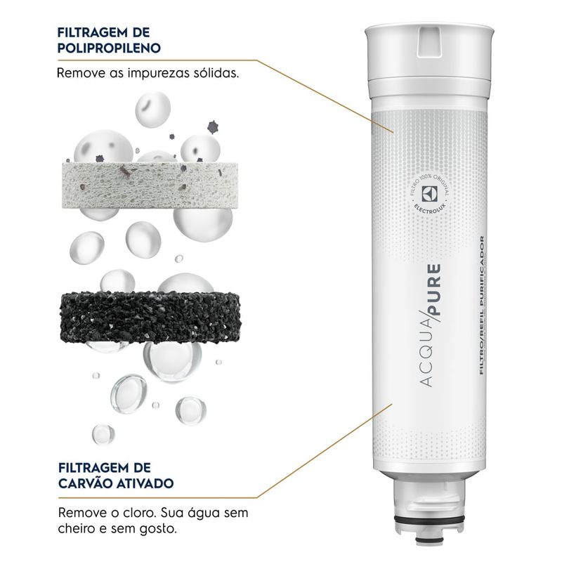 Atenção!O chamado refil compatível não é testado e aprovado pela Electrolux e coloca em risco tanto a qualidade da água que você toma como a vida útil e desempenho do seu Purificador Electrolux. Fique atento!