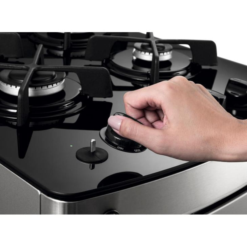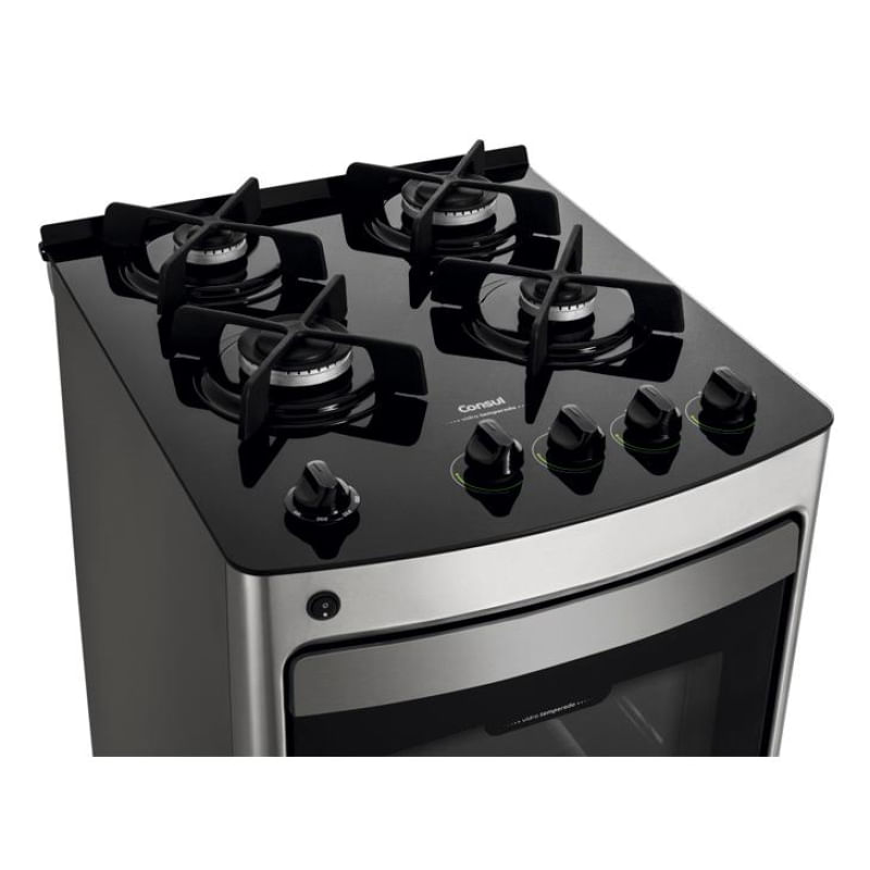 Nada melhor que preparar uma receita de chefe de cozinha sem se preocupar em ficar horas limpando o fogão, não é? Com o Fogão Consul CFO4VAR você vai se divertir na cozinha! Os botões resolvem tudo: com o acendimento automático dos 4 queimadores e do forno, você precisa apenas girar um botão para começar o preparo. Para acender a lâmpada do forno, também basta pressionar o botão! Apenas saboreie: com a tecnologia Cleartec, você limpa o forno com muito mais facilidade, já que o revestimento esmaltado do forno evita a absorção de gordura. Os botões removíveis, as trempes individuais e a mesa em vidro temperado também garantem uma agilidade na limpeza. Gostou, não é? Então leva já o teu! Características Marca: Consul Modelo: CFO4VAR Ref.: CFO4VARUNA Cor: Inox Especificações Fogão Mesa em vidro temperado; Acendimento automático; Puxador da porta cor prata; Pés frontais; Pés niveladores traseiros; Botões removíveis; Trempes individuais ferro fundido; Defletor traseiro da mesa de vidro. Forno Capacidade do forno: 58 litros; Acendimento automático; Botão de acendimento da lâmpada do forno; Botão de controle da temperatura do forno; Acabamento Cleartec; Porta com duplo vidro temperado; Lâmpada do forno: G9 25 W; 01 Prateleira com 3 níveis de altura. 01 Prateleira auto deslizante: ao abrir a porta do forno a prateleira se movimenta para fora Queimadores Queimador do forno: 2,4 kW Queimador grande: 2,75 kW Queimador médio: 1,65 kW Alimentação Voltagem: Bivolt Classificação elétrica: A Tipo de gás: GLP Itens Inclusos 01 Fogão 4 Bocas Dimensões Tamanho (AxLxP): 94,8 x 51,8 x 60,3 cm Peso: 27,5 Kg Garantia: 12 meses