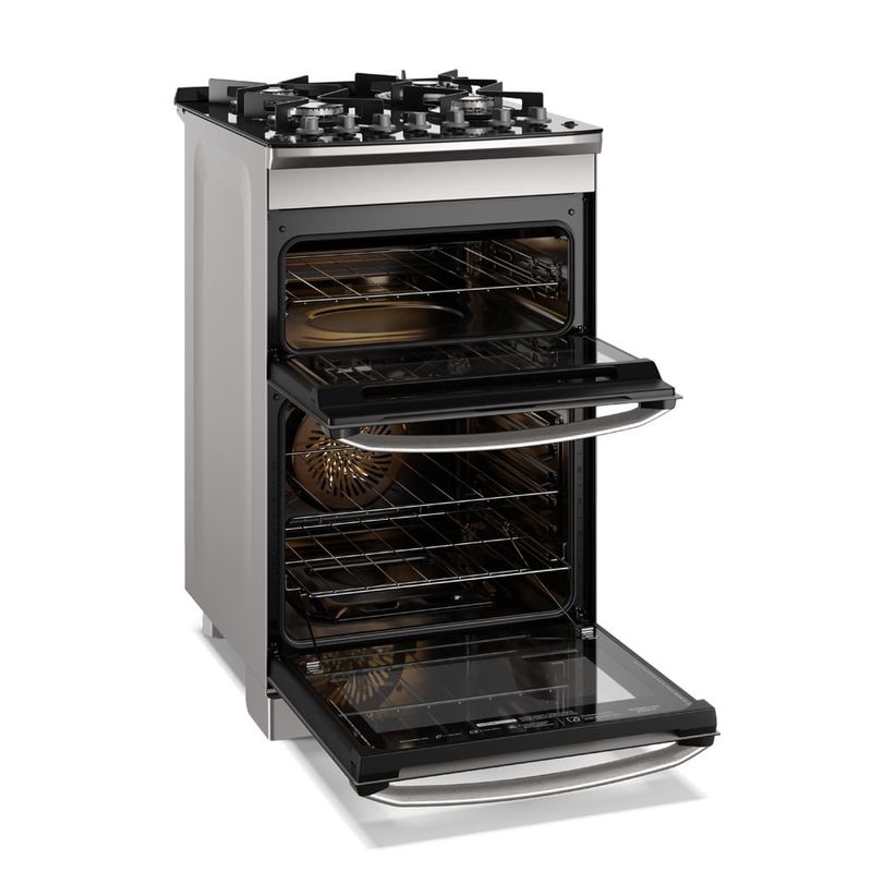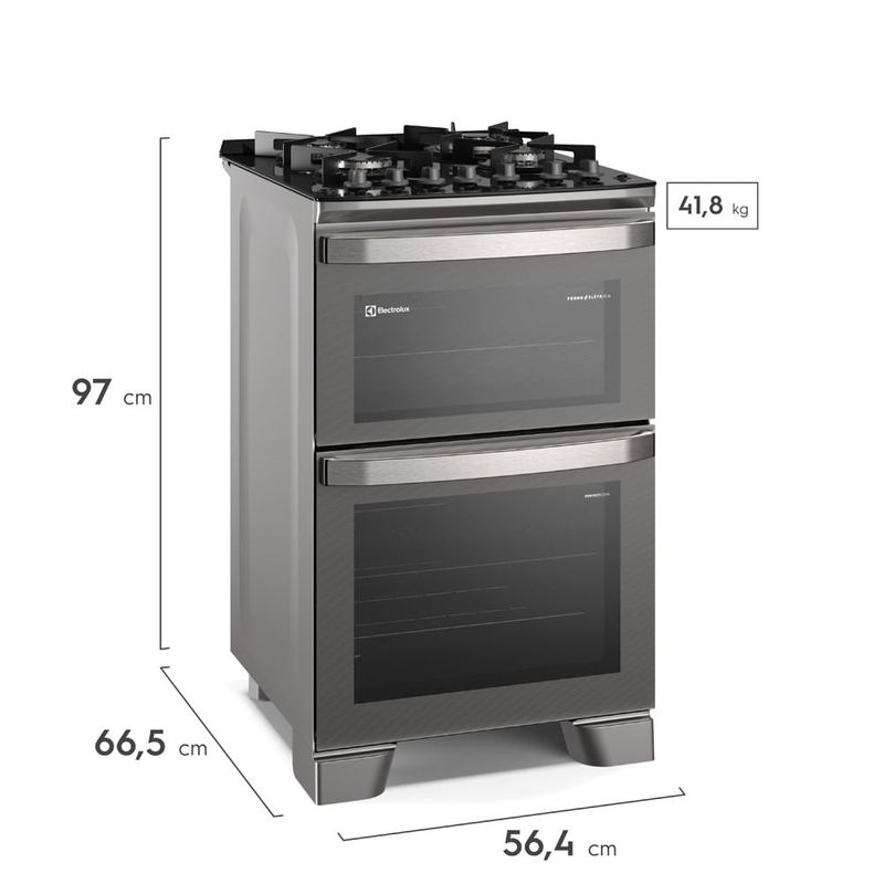 Possui dois fornos independentes para que você tenha mais rapidez e liberdade na hora de preparar suas receitas favoritas e deixa sua cozinha mais elegante e moderna graças à cor cinza e ao design moderno.