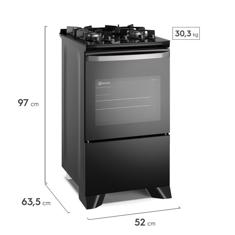 O Fogão 4 bocas Electrolux Preto Efficient Mesa Vidro, Tripla Chama e PerfectCook (FE4GB) possibilita menos esforço na hora de cozinhar e maior estabilidade das panelas. Com a Exclusiva Tecnologia PerfectCook, o forno possui melhor isolamento térmico no interior da cavidade selada e oferece maior controle de temperatura com menos perda de calor, reduzindo o tempo de cozimento dos alimentos em até 37%.