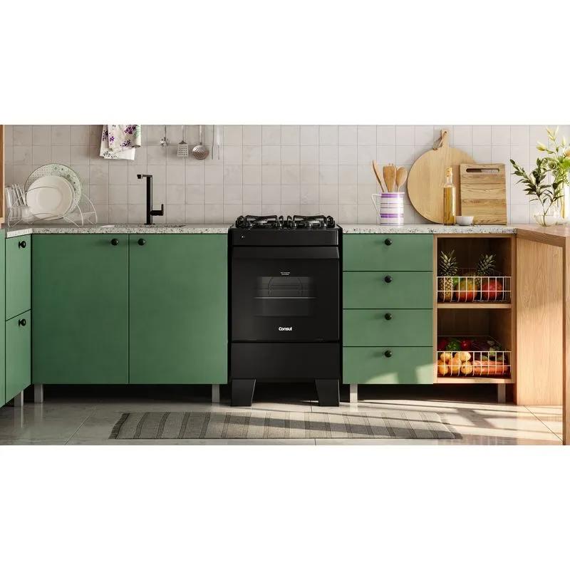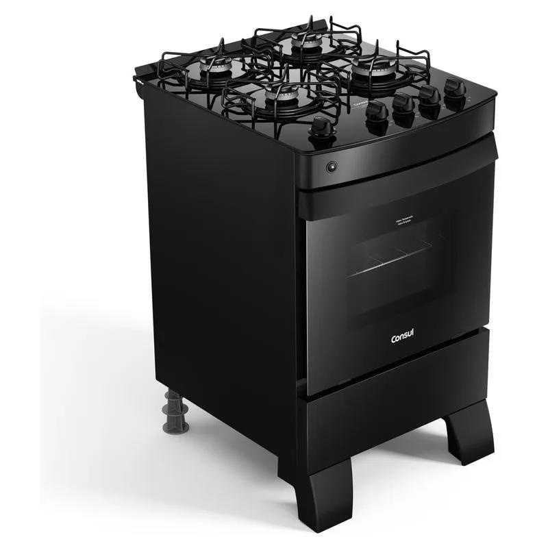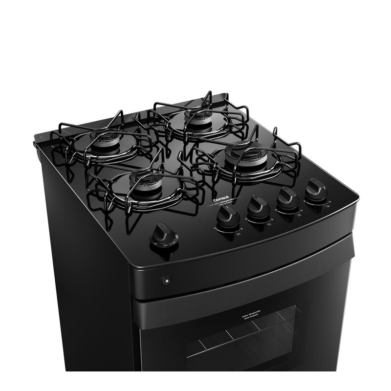 Fogão 4 Bocas Preto Consul com Mesa de Vidro CFO4VCE Bivolt