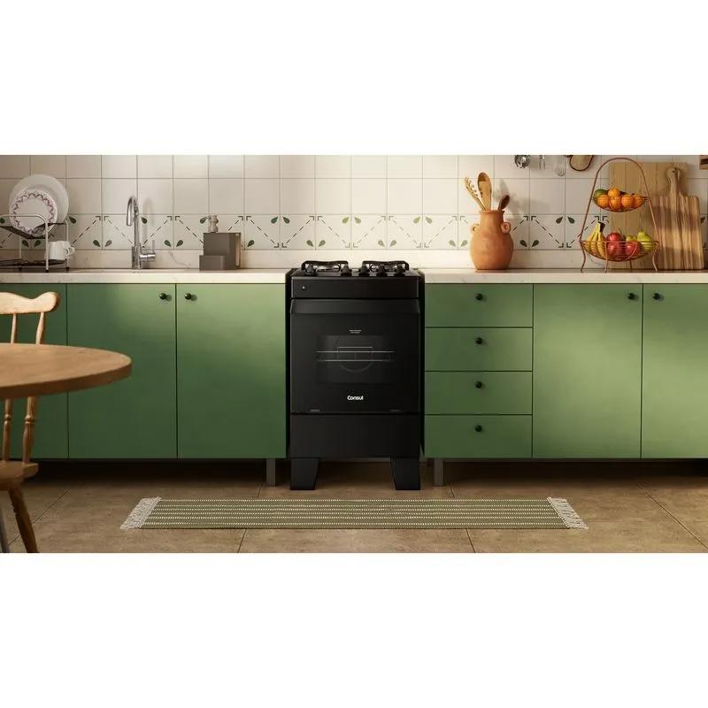 Fogão 4 Bocas Preto Consul com Mesa Esmaltada CFO4ZAE Bivolt