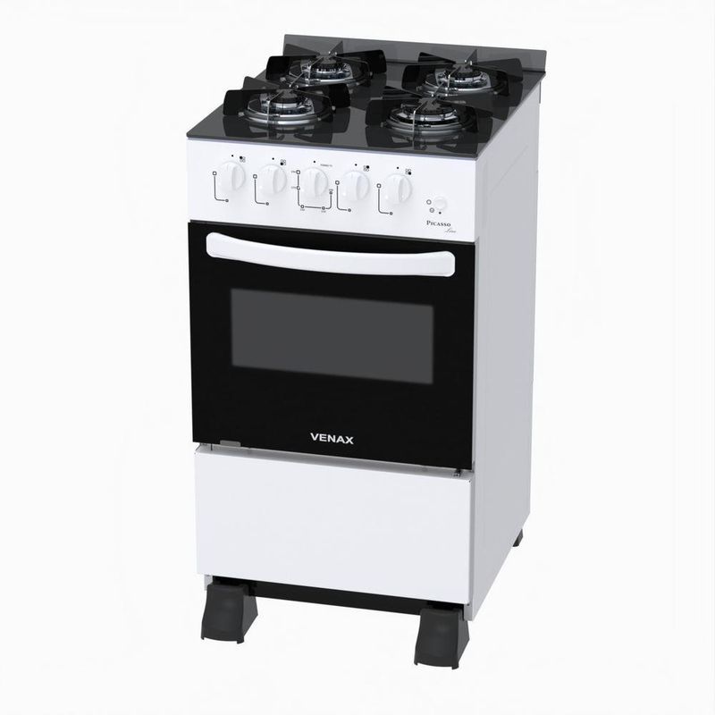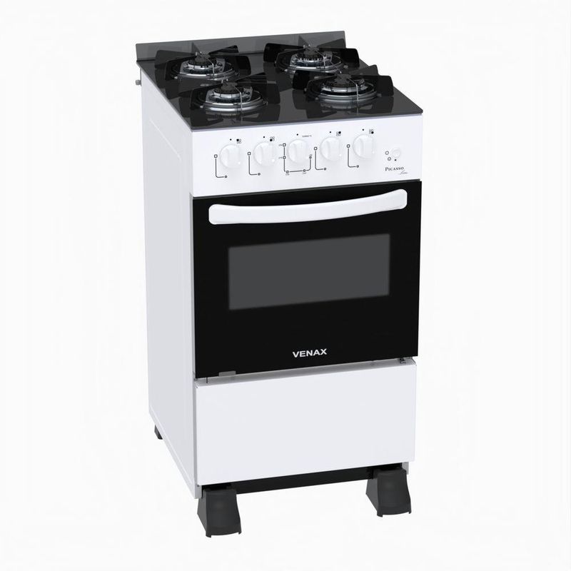 Fogão 4 Bocas Venax Picasso Line Mesa De Vidro Branco Bivolt