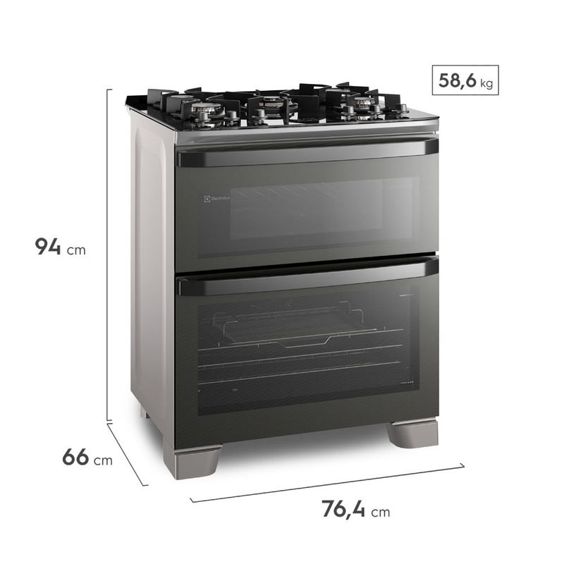 Revolucione sua cozinha com o Fogão 5 bocas Electrolux Cinza Expert Função Air Fryer, 2 Fornos, Grill e Timer (FE5AD) a combinação perfeita para uma alimentação saudável em grandes porções.