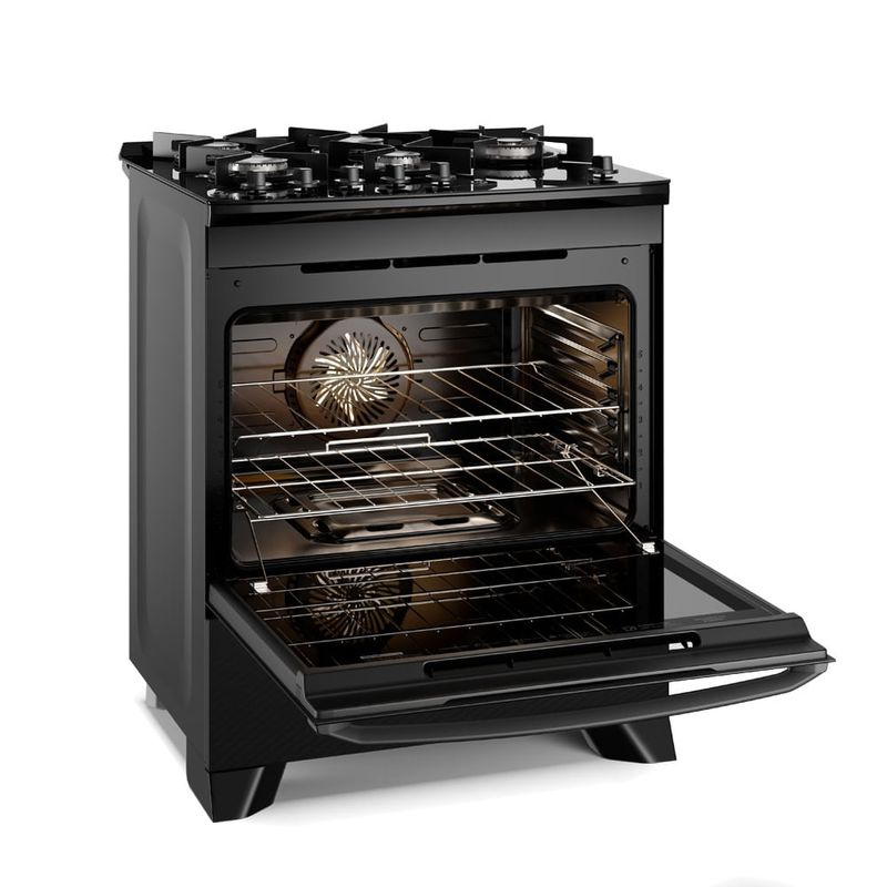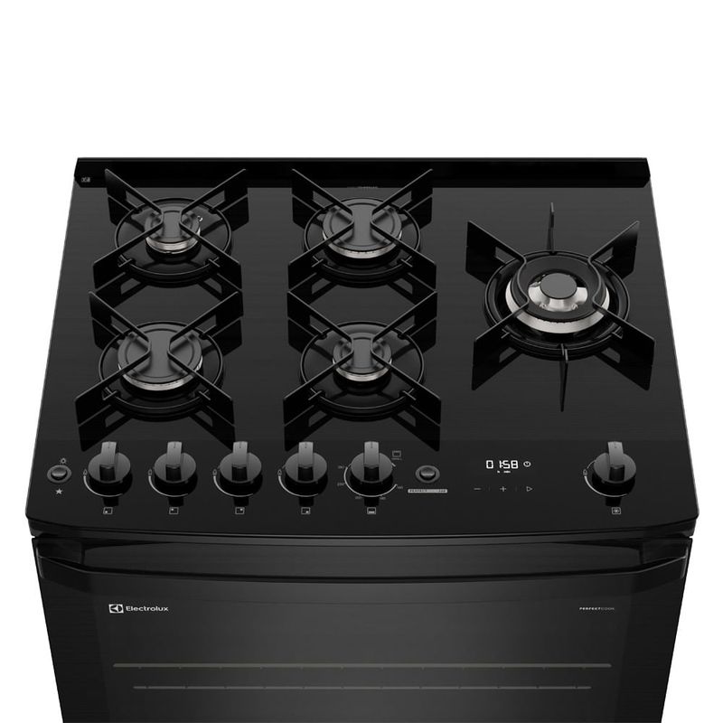 Tenha uma cozinha mais elegante e rápida com o Fogão Electrolux 5 Bocas Preto com PerfectCook 360, VaporBake® e Grill. Pratos mais saborosos em menos tempo!