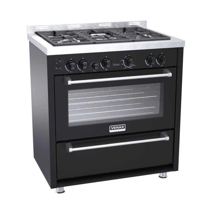 Fogão 5 Bocas Venax Temis A Gas Mesa De Inox Preto 220V