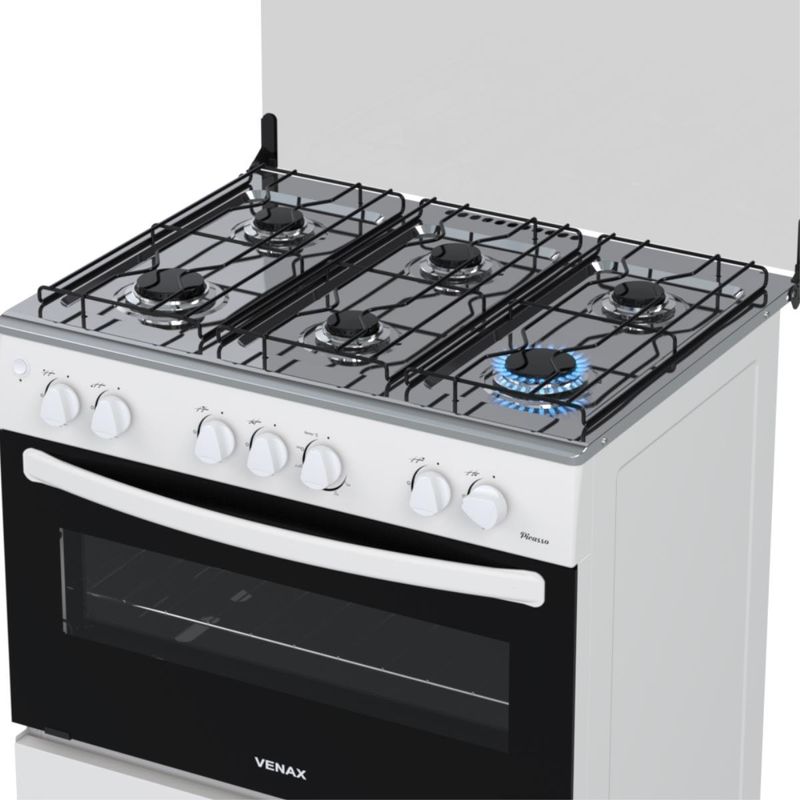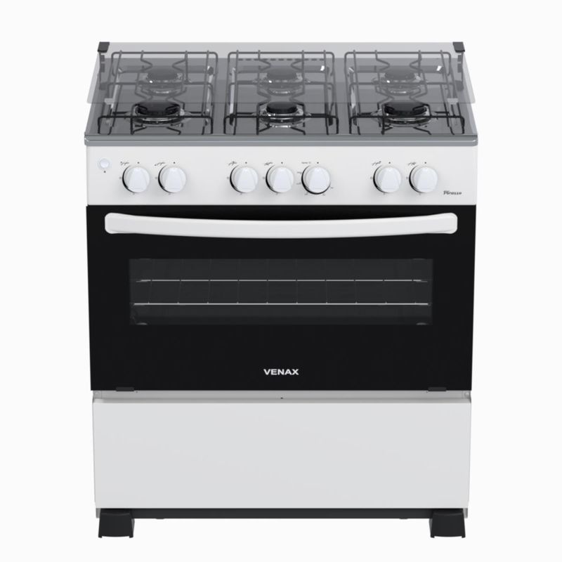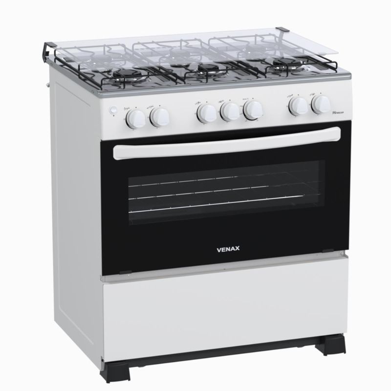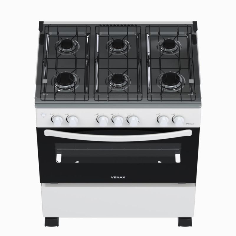 Fogão a Gás 6 Bocas Picasso GIII, Com Mesa em Inox, com Acendimento Total, Botões Removíveis, com Tampa de Vidro, Vidro na Porta do Forno, Puxador da Porta do Forno em Aço Pintado, Porta Removível, Uma Grade no Forno e Forno Easy Clean.